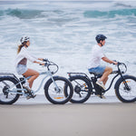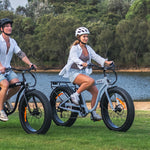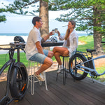 You also get a premium alloy frame, high-end Tektro hydraulic disc brakes, Shimano 7 speed gears, a headlight that runs off that battery and a handy rear rack for securing your gear. So, grab some mates and hit the beach or discover some new trails!