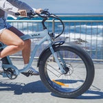 The Valk Fat Cruiser ebike has everything you need for an awesome relaxed ride. With 26 inch wheels wrapped in 4 inch wide tyres there are few limits to where you can explore.